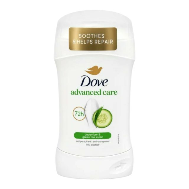 Dove Advanced Care Antiperspirant Stick, cu parfum de castravete și ceai verde.
