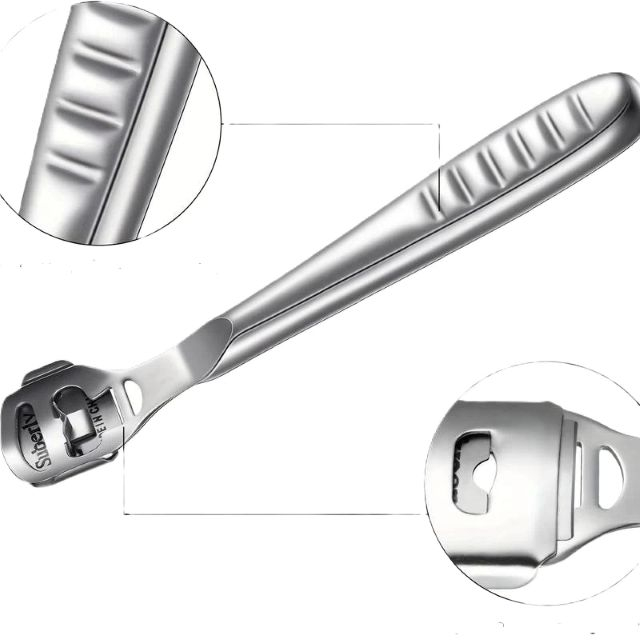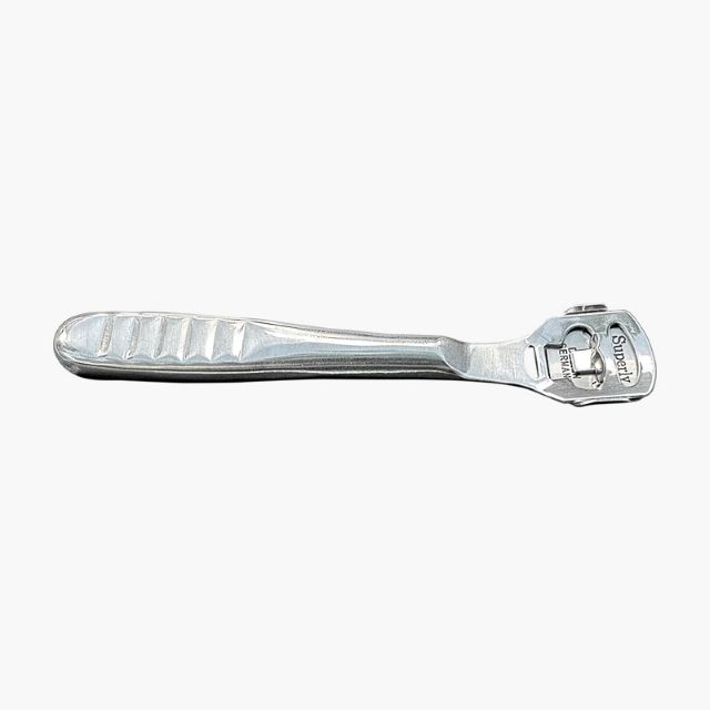 Răzuitor pentru călcâie (cunoscut și sub denumirea de brici pentru bătături), un instrument profesional de pedichiură utilizat pentru îndepărtarea calusurilor și a pielii îngroșate.