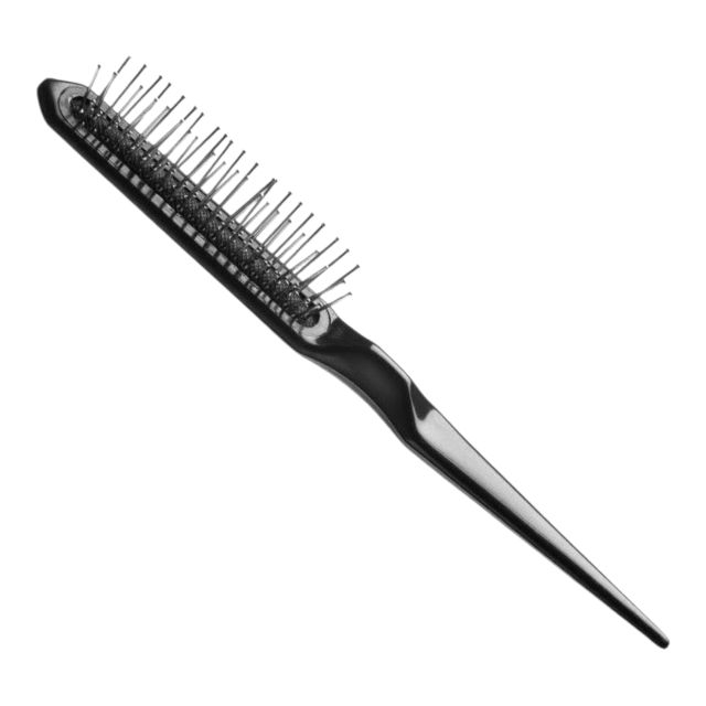 Mâner cu coadă ascuțită: Designul ergonomic include un vârf subțire (tip „rat tail”) care facilitează separarea șuvițelor și crearea cărărilor exacte.
