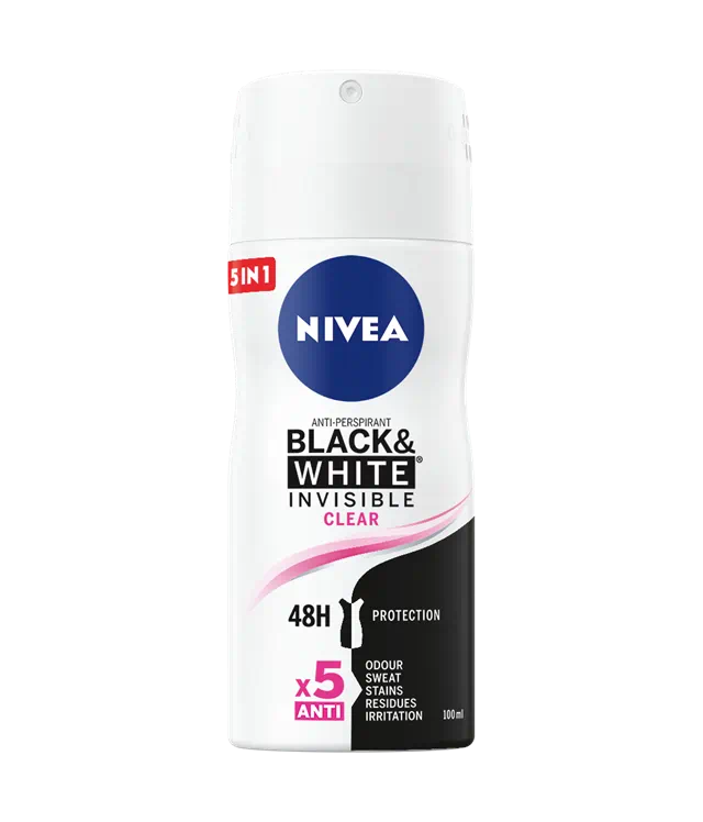 Deodorantul NIVEA Black & White Invisible este dezvoltat alături de experți pentru a oferi protecție anti-perspirantă de încredere, fără a lăsa urme albe pe hainele negre și pentru a reduce apariția petelor galbene pe hainele albe. Ai siguranţa că albul rămâne alb şi negrul rămâne negru pentru mai mult timp. Formula unică oferă o protecție anti-perspirantă pentru 48h și păstrează culoarea originală a hainelor - formula invizibilă nu lasă urme.