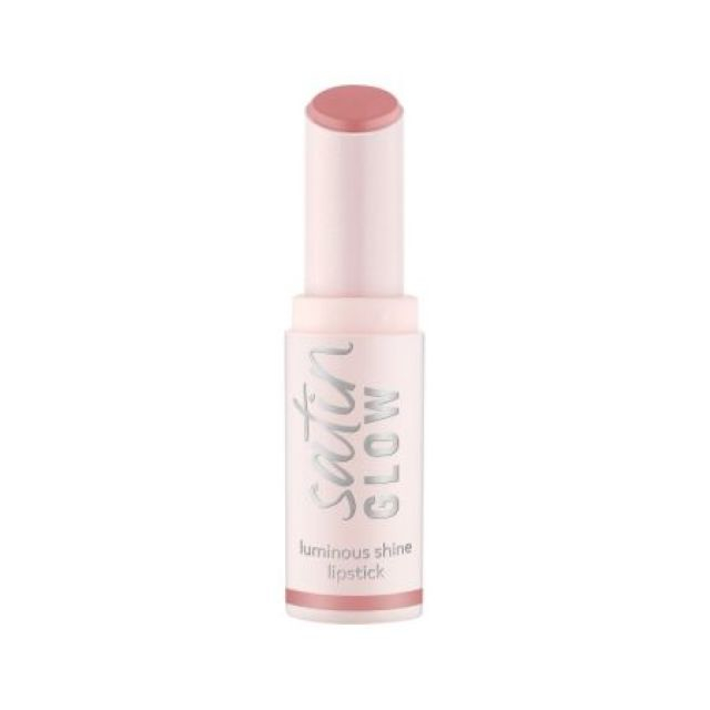 Essence satin GLOW luminous shine lipstick 02 Blushin It, într-o nuanță nude roz, foarte pigmentat, oferă o culoare intensă dintr-o singură aplicare, în timp ce textura cremoasă și delicată alunecă fără efort și se simte ultra-confortabil pe buze.