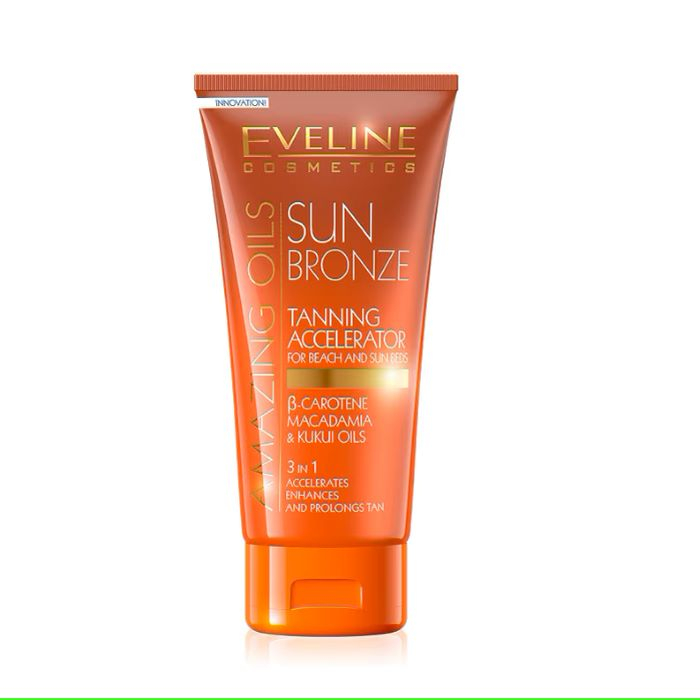 Acceleratorul pentru bronzare poate fi utilizat atat la plaja cat si la solar pentru un bronz rapid, profund si de lunga durata. Cu ajutorul betacarotenului si al uleiului de macadamia, ofera protectie si hidratare intensa. Vitaminele A+E+F fac bronzul sa fie unul natural. Vitamina E - protejeaza impotriva radicalilor liberi si pentru a preveni formarea prematura a ridurilor. Se aplica uniform inainte de expunerea la soare.