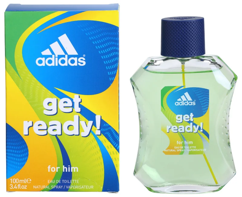 Adidas Get Ready este un parfum versatil, lemnos, aromat pentru bărbați, care îi oferă încrederea necesară pentru a aborda orice aventură. Notele de varf ale acestei colonii sunt mandarina, note marine si ananas. Notele de mijloc includ lavandă, salvie și fructe exotice. Notele de bază aromatice de cedru și lemn de santal.