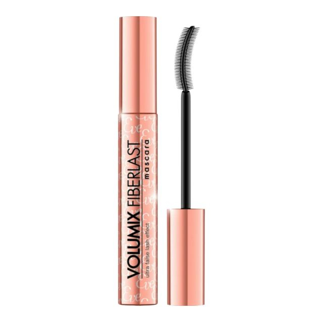 Mascara cu efect de gene false Volumix Fiberlast Rose are periuța curbată care ajută la separarea genelor și obținerea unui volum maxim.