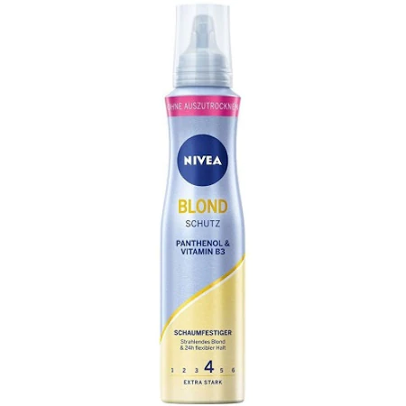 Spuma NIVEA Blonde Extra Strong , ajuta la mentinerea coafurii dorite pana la 24 h fara a lipi firele de par sau a le incarca.